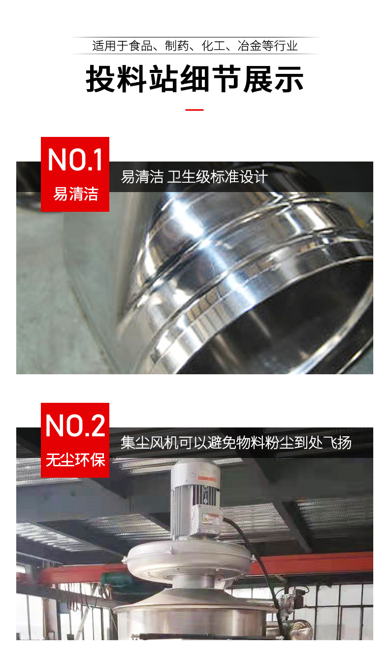 Product introduction該設備適用于食品、制藥、化工、冶金行業中小袋物料的拆包、投放、篩分和卸料,特別適用于粉料人工投料和預篩分,拆包時由于集塵風機的作用,可以避免物料粉塵到處飛揚。