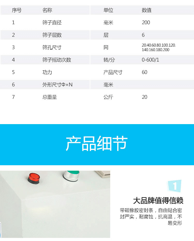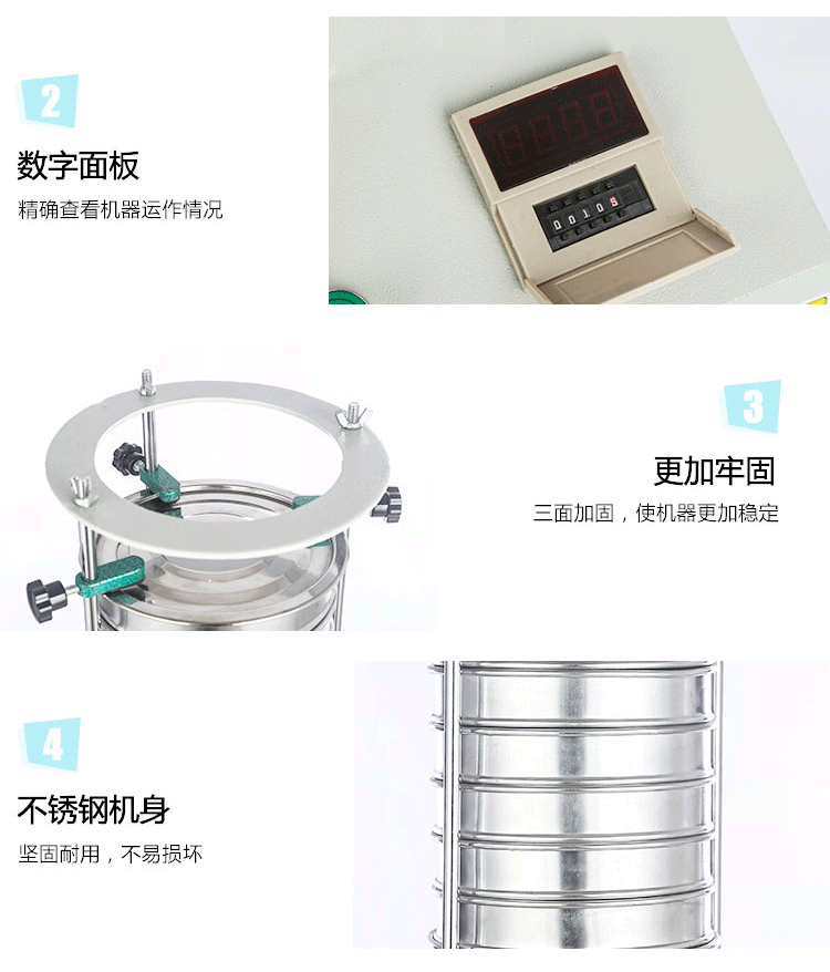 檢驗(yàn)篩結(jié)構(gòu)緊湊 、噪音低、效率高、精度準(zhǔn)確等特點(diǎn)突出,