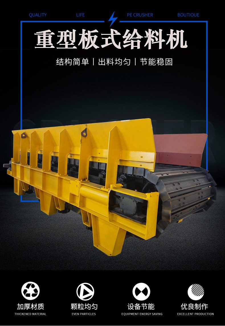產品簡介:板式給料機有輕型、中型、重型三種,其向上傾角20度。分別適用于沿水平或傾斜的線段由貯料倉向破碎機輸送機或其它工作機械與容...