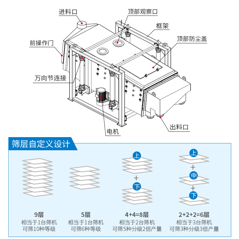 兩層篩框設計;也有三層篩框的機型供客戶選擇。