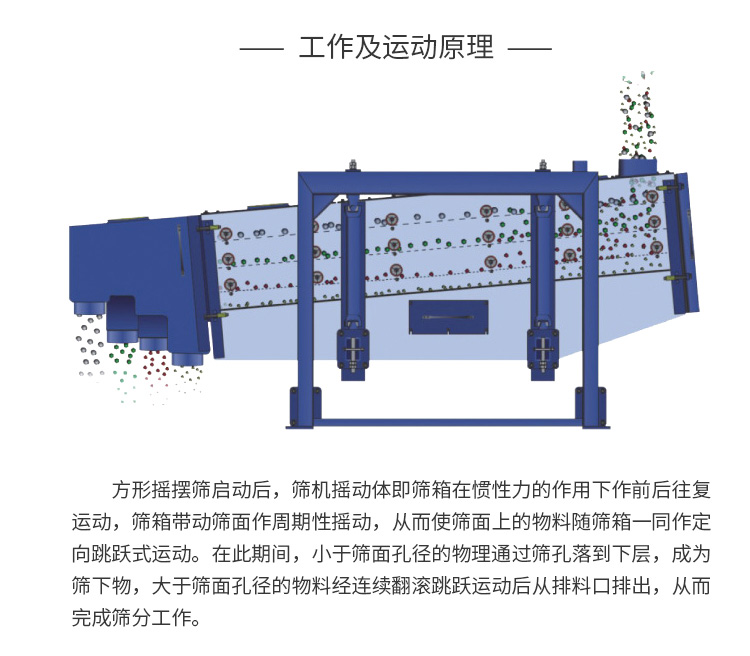 產品簡介:方形搖擺篩系列篩機是滿足大產量、高精度需求的用戶而研發設計的一種篩分設備。它廣泛用于化工、冶金、礦業、飼料業、食品等多個...