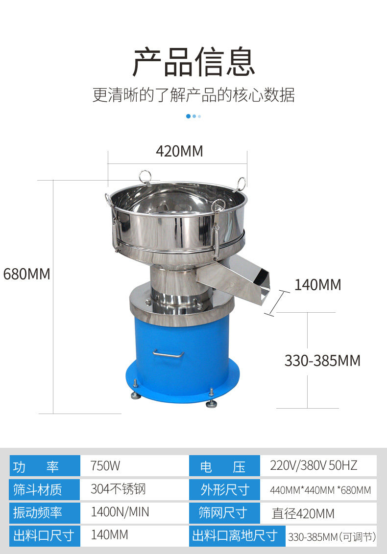 Product introduction450過濾篩是一種低噪音,效率高,便于移動的小型振動篩分過濾機,是集粉粒分級、液體過濾為一體的單層振動篩。適用于各行業生產廠家單層篩分和過濾用,處理生產量不多或雜質少的物料,例如:大顆粒含量的粉末篩分與漿液過濾;325目過濾比重1.1的噴漆料,每小時可達1200公升,30目篩分面粉每小時可處理700公斤.不銹鋼(304)材質,機型小巧,重量輕,可任意移動,不占空間。備注:450型的振動篩分過濾機多用于食品行業,所以使用的材質為304不銹鋼設計。